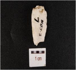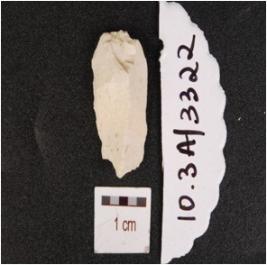 | Description / विवरण | A flake made on chert, irregular edge and diffused bulb on ventral side. |