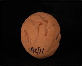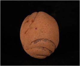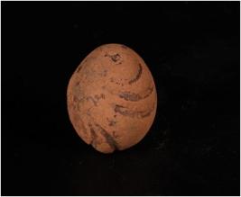 | Description / विवरण | Handmade terracotta object of sling ball, made with well lavigated clay, wash treatment in red colour, deep incised lines on surface, smooth surface. |