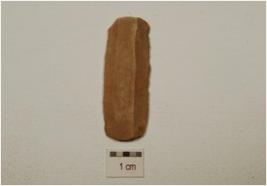 | Description / विवरण | A blade made on chert, broken along both ends, bladescars on dorsal side, use-wear marks along cutting edges. |