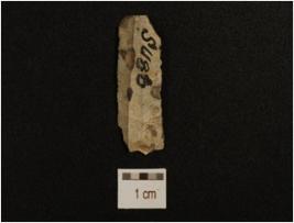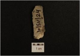 | Description / विवरण | A blade made on chert, broken distal end, prepared platform on proximal end , blade scars on dorsal side, use-wear marks along cutting edges. |