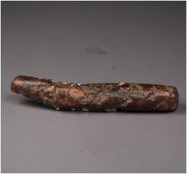 | Description / विवरण | Fragment of copper arrowhead with square section, the object is broken from both ends, rough surface, the object is slightly bent with thicker and flattened surface. |