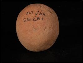 | Description / विवरण | Handmade terracotta sling ball, made with well lavigated clay, ill fired, buff in colour, smooth surface. |