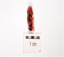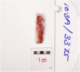 | Description / विवरण | A carnelian blade, flake scars, cortex on the surface, diffused bulb on ventral side, prepared platform on the proximal end, sharp cutting edges. |