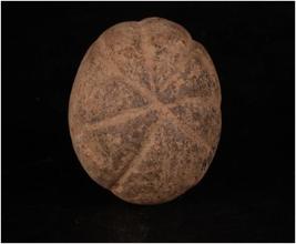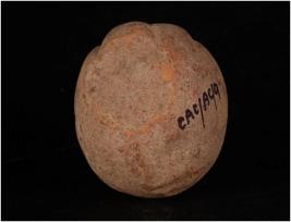 | Description / विवरण | Handmade object sling ball, made on solid stone, buff colour rough surface decorated in incised design from top portion. |