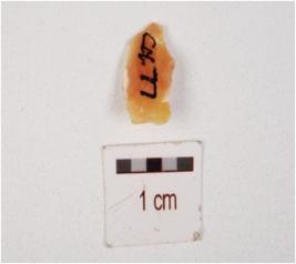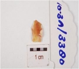 | Description / विवरण | A chert flake, cortex and flake scars on the surface. |
