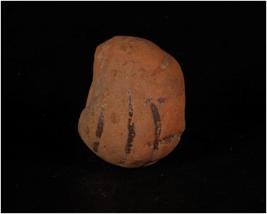 | Description / विवरण | Handmade terracotta of sling ball, made with well lavigated clay, ill fired , buff in colour, partly borken, well decorated with incised lines. |
