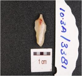 | Description / विवरण | A chert flake, diffused bulb on ventral side, flake scars on dorsal side. |