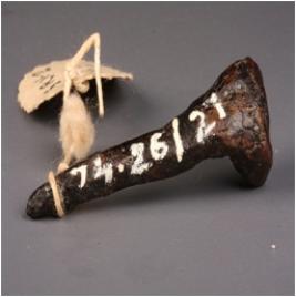 | Description / विवरण | Iron nail, round section with a flat circular head, tapering end. |