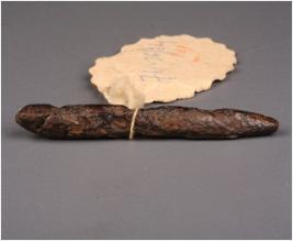 | Description / विवरण | A iron nail, roundish section with tapering end, headless. |