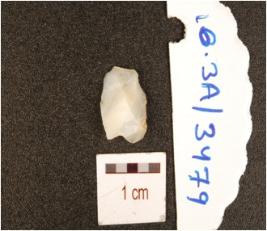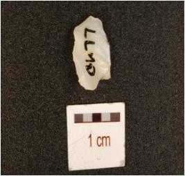 | Description / विवरण | A chalcedony utilized flake with flake scars on dorsal and use wear marks on working edge. |