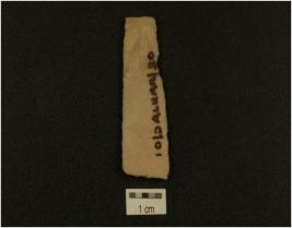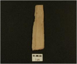 | Description / विवरण | A blade made on chert diffused bulb on ventral side on proximal end and two ridges on ventral side, irregular retouching marks on edges. |