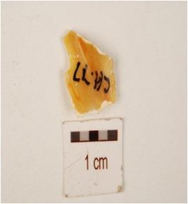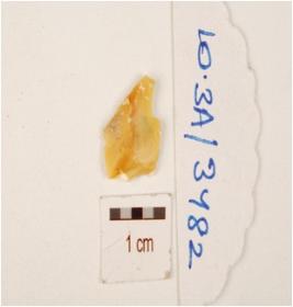 | Description / विवरण | A chalcedony flake with flake scars on dorsal. |