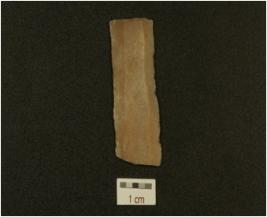 | Description / विवरण | A blade made on chert mid ridge on dorsal side and diffused bulb on ventral side use wear marks on edges. |
