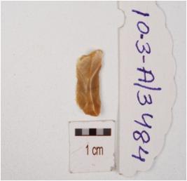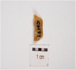 | Description / विवरण | Fragment of chert blade with use wear marks along the cutting edge and triangular cross section. |