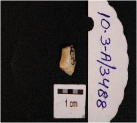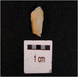 | Description / विवरण | Fragment of chalcedony blade with use wear marks along the cutting edge and triangular cross section. |
