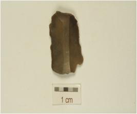 | Description / विवरण | A blade made on chert diffused bulb on ventral side and mid ridges on dorsal side, use wear marks on edges. |