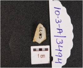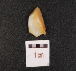 | Description / विवरण | A chalcedony flake with one ridge and triangular cross section. |