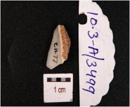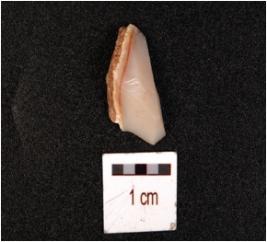 | Description / विवरण | Chalcedony flake with one ridge and cortex on surface. |