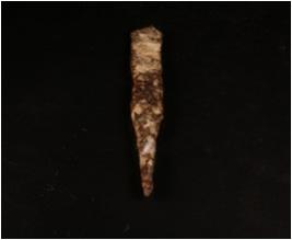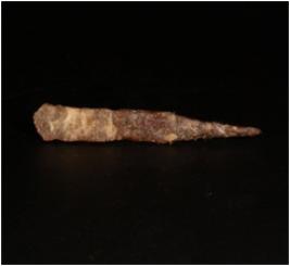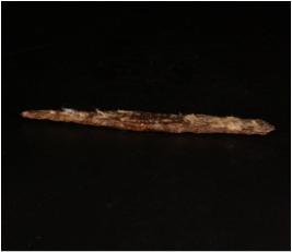| Description / विवरण | Fragment of iron object probably chiesel , thin in character, pointed ends, edges are uneven in shape, rusted, rough surface. |