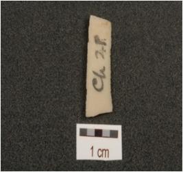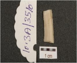 | Description / विवरण | A blade fragment made on chert with ridge on dorsal, trapezoidal cross-section, wear marks along the one working edge. |