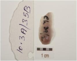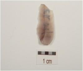 | Description / विवरण | A blade fragment made on chalcedony with a mid ridge, triangular cross-section, bulb is prominent on ventral side. |