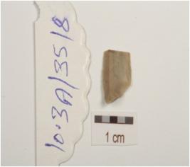 | Description / विवरण | A blade fragment made on chert with double ridge on dorsal, trapezoidal cross-section, bulb is prominent on ventral side. |
