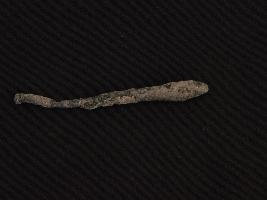 | Description / विवरण | Trench ZA1 Qdt3 L x B - D 9.5 x 2.64 - 6.8 at peg B1 Stratum Layer 21 This is a rod made of copper alloy. The rod is thicker at its one end and other end is sleek. Hard patina with mud is deposited on it. The rod is slight by tilted from one side. Appearance is of green and muddy. |
