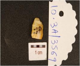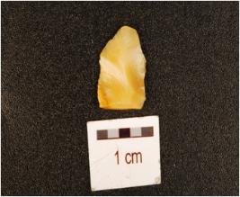 | Description / विवरण | A fragmentary blade made on carnelian, mid ridge on dorsal, irregular edges, diffused bulb on ventral. |