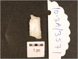 | Description / विवरण | A blade made on chalcedony, ridge on dorsal, irregular edges and diffused bulb on ventral. |