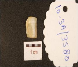 | Description / विवरण | A blade made on chalcedony, two ridges on dorsal, use wear edges and prominent bulb on ventral. |