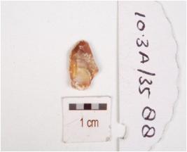 | Description / विवरण | A chert end struck flake, diffused bulb on the ventral side, flake scars on the dorsal surface. |