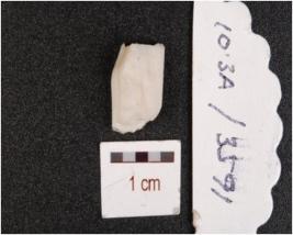 | Description / विवरण | A flake made of quartzite, flake scars on the surface. |