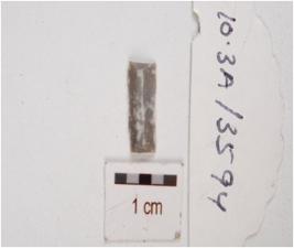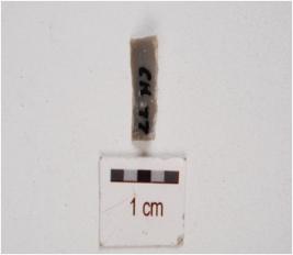 | Description / विवरण | A chert blade, flake scars on the surface, prepared platform on proximal end, use wear marks on cutting edges. |