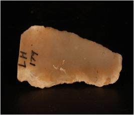 | Description / विवरण | Chert stone blade, one ridge mark on dorsal side. Edges are sharp and ventral and side is smooth. |