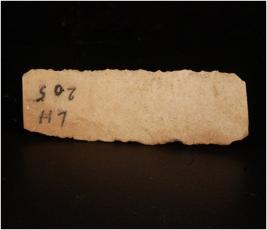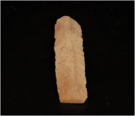 | Description / विवरण | Chert stone blade, three ridge marks on the surface of dorsal side. Edges are sharp, and both dorsal and ventral surface is smooth. |