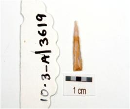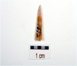 | Description / विवरण | Fragment of a point made on chert with trapezoidal cross-section and re-touched |