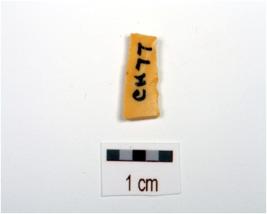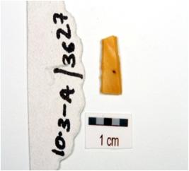 | Description / विवरण | Fragment of a blade on chert with ridges on dorsal, trapezoidal cross-section and use marks along cutting edges. |