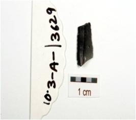 | Description / विवरण | Fragment of a blade on chert with a ridge on dorsal, trapezodial cross-section and use marks along cutting edges. |
