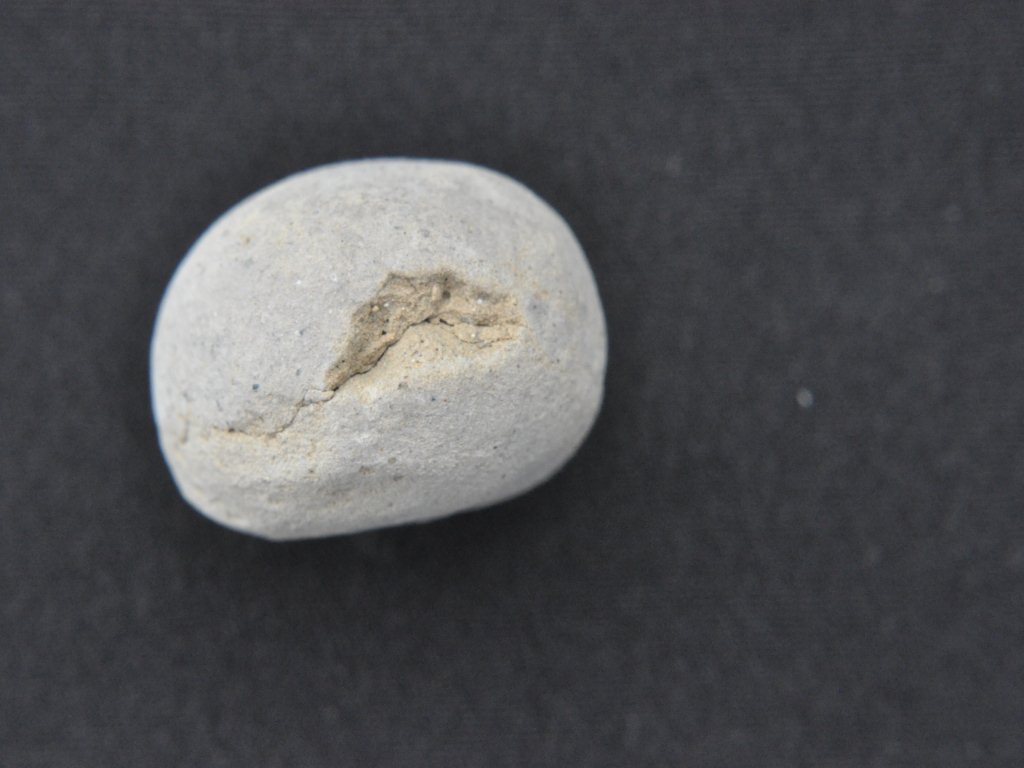 Trench SGL-2, E off, Breadth 0.50 to 8 mtrs, Depth 1 mtr, Stratum Pit 1 2 The object identified as ball made of baked clay, having uneven, rough and muddy surface on it, might be used as gamesman as a part of entertaining purpose.