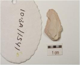 | Description / विवरण | A chert blade, flake scars on the surface, prepared platform on the proximal end and prominent bulb on the ventral side, use marks on the cutting edges. |