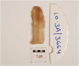 | Description / विवरण | A chert blade, double ridge on dorsal, retouches on edges and trapezoidal cross section. |