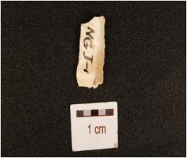 | Description / विवरण | A chert blade two ridges on dorsal. |