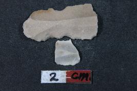 | Description / विवरण | Fragment of a blade with two dorsal ridges having smooth surface. Shorter blade along with one dorsal ridge has Length- 1 cm and Breadth- 1.1 cm. |