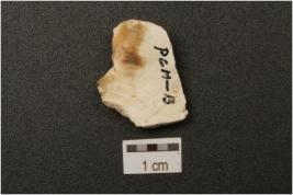 | Description / विवरण | A chalcedony flake, cortex on the surface and prominent bulb on the ventral side. |
