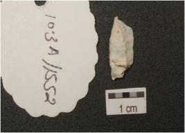 | Description / विवरण | A flake made of chert, flake scars on the surface and blunt edges. |