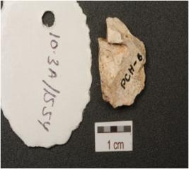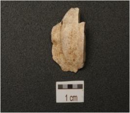 | Description / विवरण | A utilized flake made of chert, flake scars and cortex on the surface with use marks on edges. |
