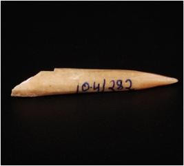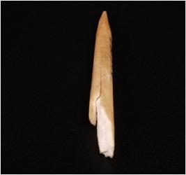 | Description / विवरण | A point made of bone with pointed end, rough surface, half broken and circular section. |