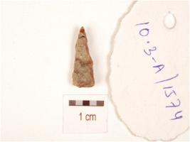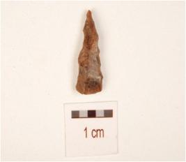 | Description / विवरण | A knife shaped agate blade, mid-ridge on dorsal use marks on working edges, distal end is pointed. |