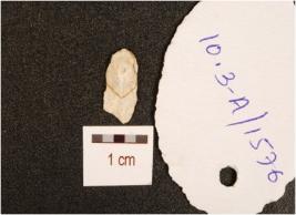 | Description / विवरण | A blade made on chert, mid-ridge on dorsal and irregular edges. |