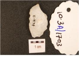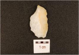 | Description / विवरण | A quartz utilized flake with flake scars, cortex on dorsal and use-wear marks on edge. |
